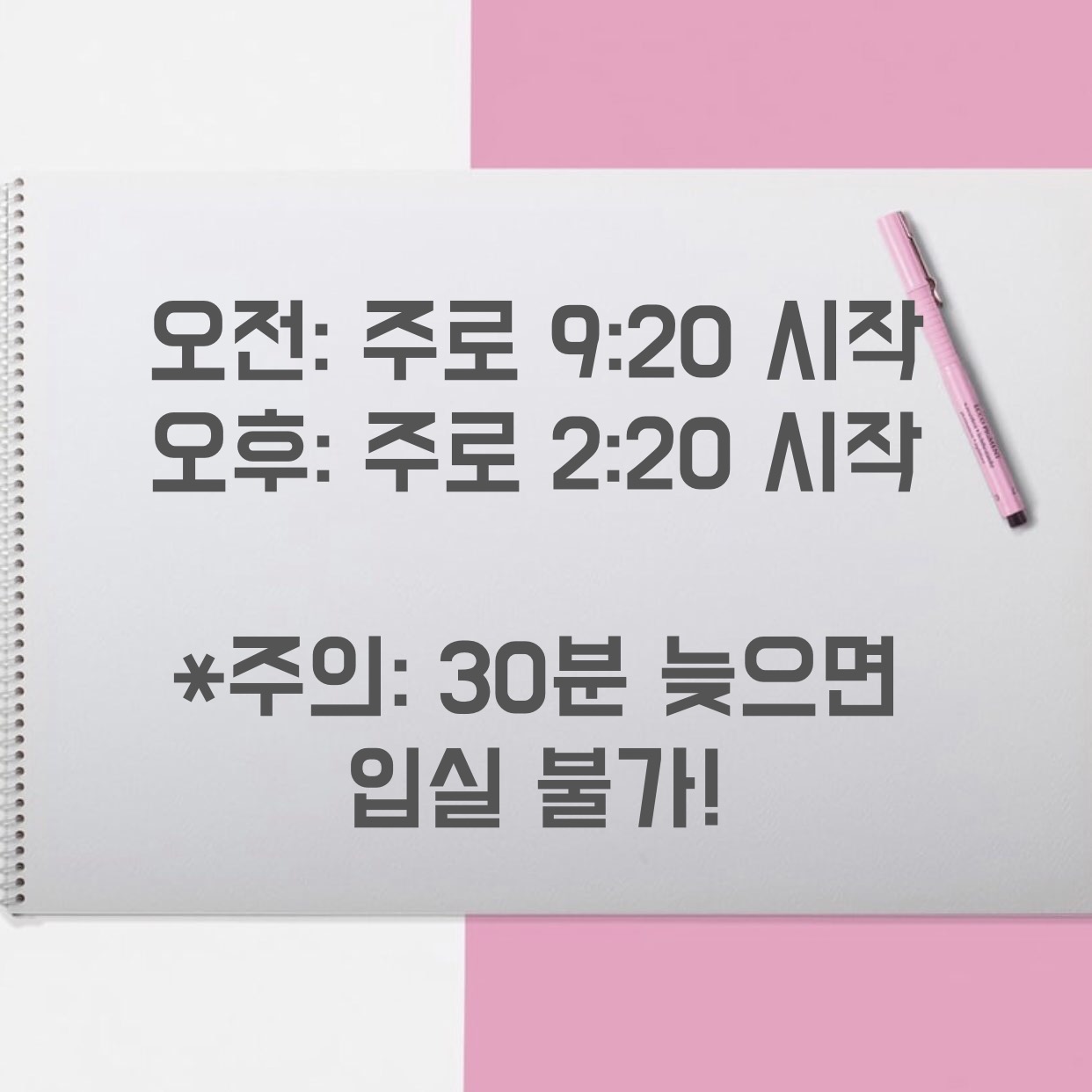 -이에 따라 꼭 9시 20분까지는 입실 완료하여야 하며, 30분을 초과해 9시 50분이 되면 입실 불가능