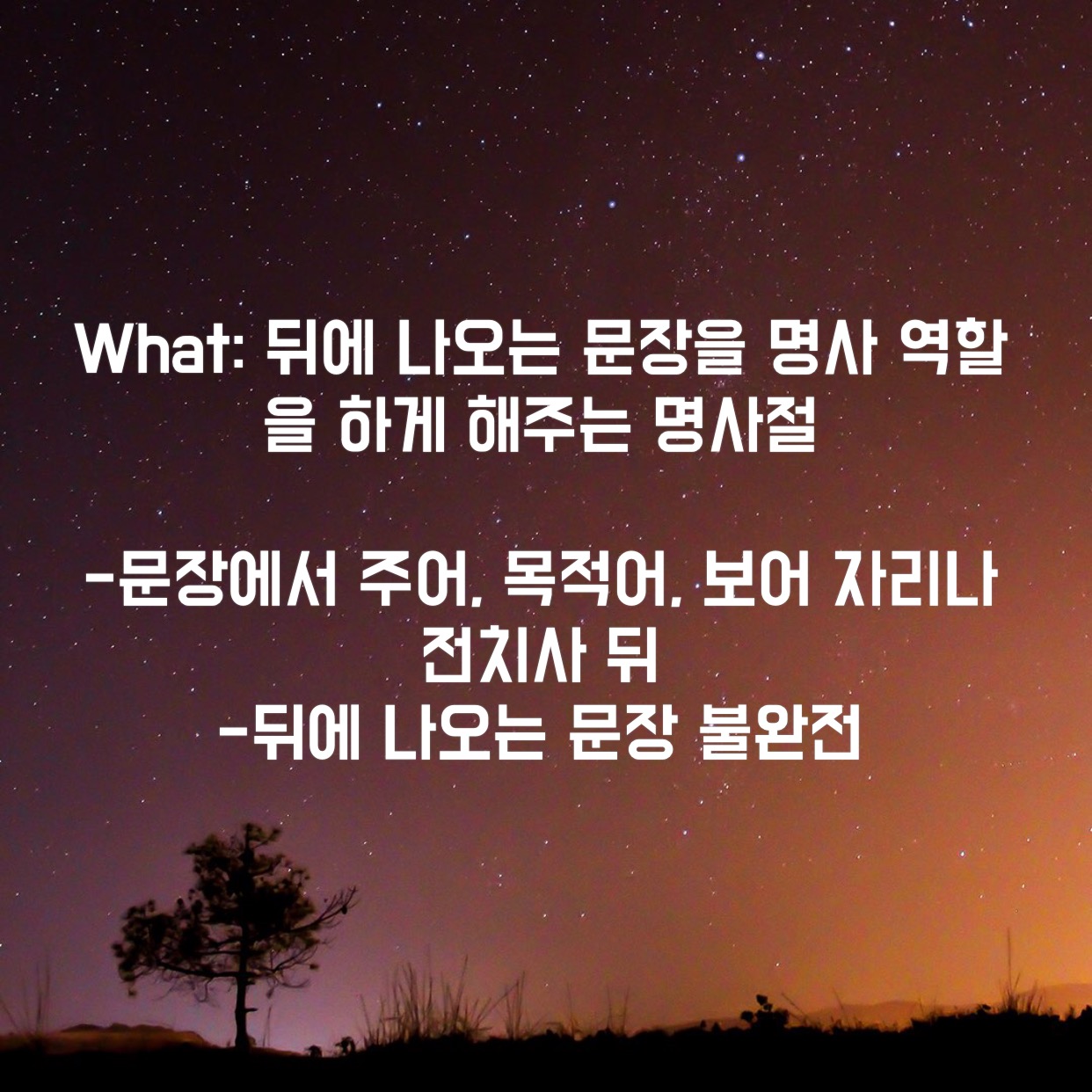 what절은 문장에서 주어, 목적어, 보어 자리나 전치사 뒤에 쓰일 수 있게 되죠