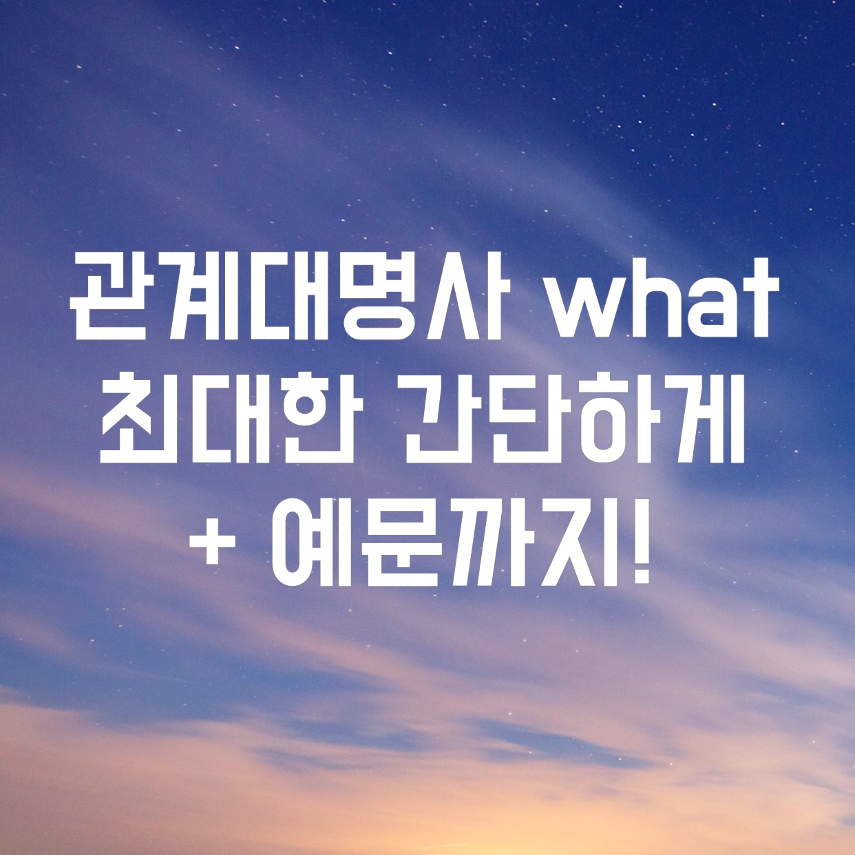 오늘은 관계대명사 what에 대해서 전반적으로 알아보겠습니다.