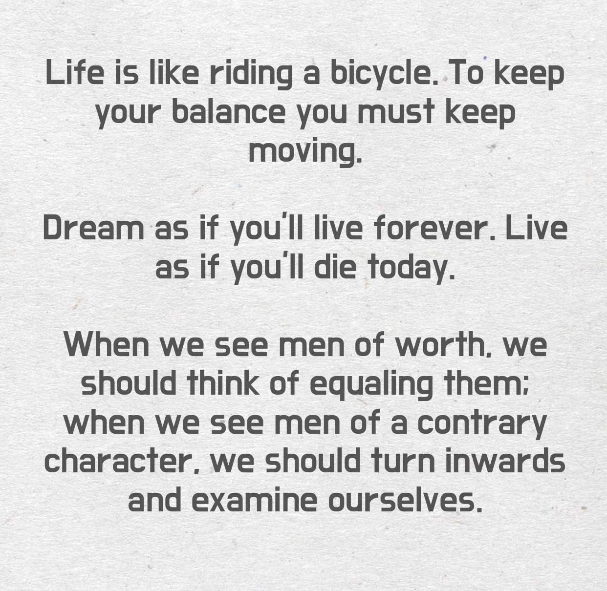 5. Life is like riding a bicycle. To keep your balance you must keep moving.