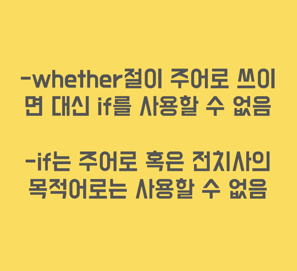 결국 whether은 모든 자리에 다 올 수 있지만 if는 그렇지 않다는 점입니다.