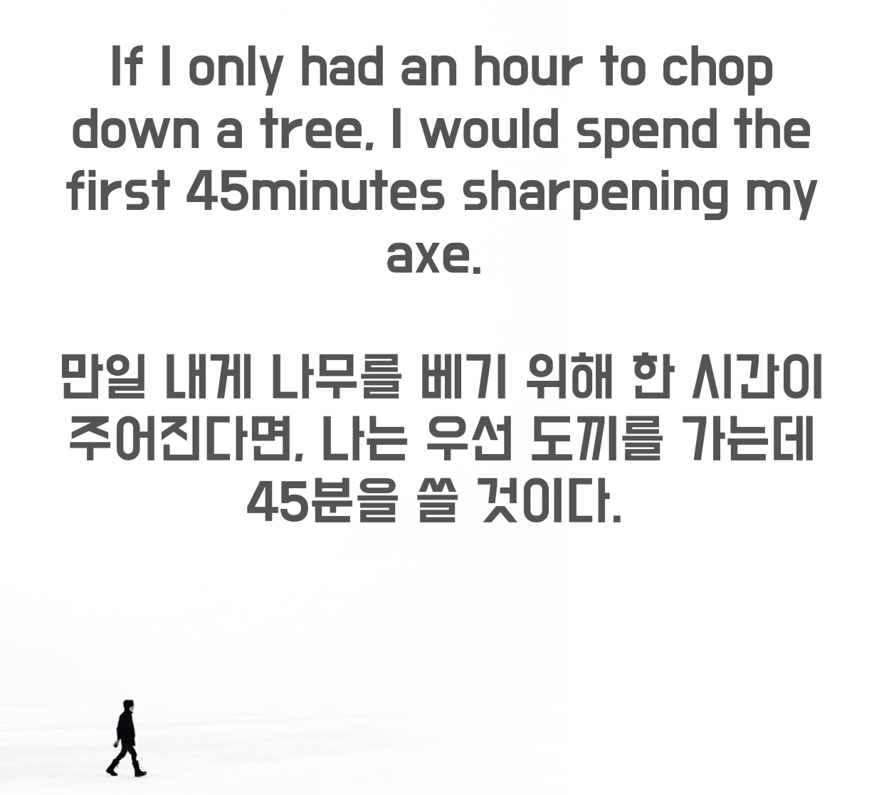 만일 내게 나무를 베기 위해 한 시간이 주어진다면, 나는 우선 도끼를 가는데 45분을 쓸 것이다.
