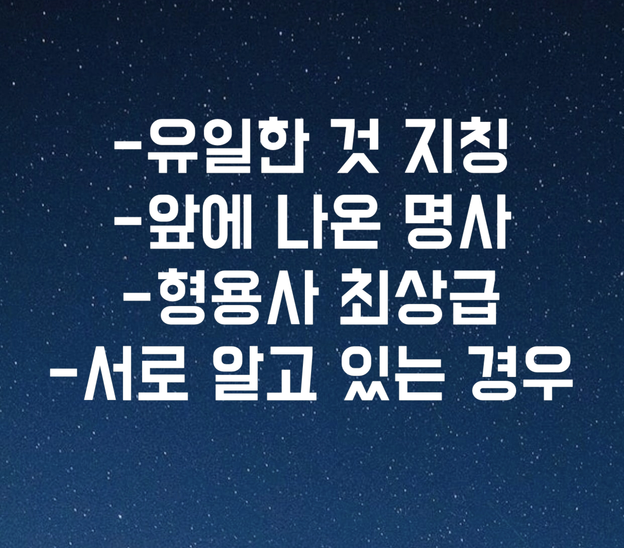 1. 세상에 하나밖에 없는 유일한 것을 지칭할 때