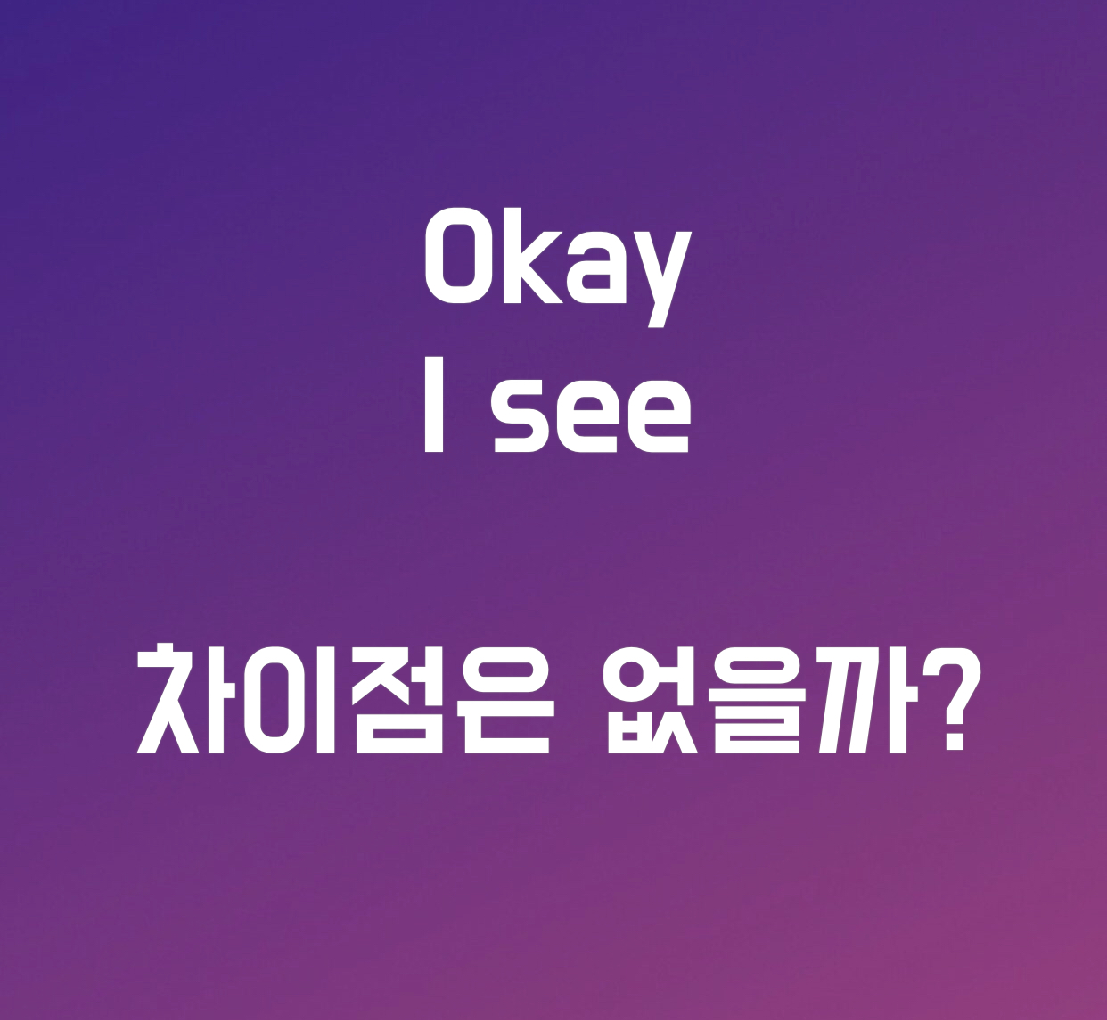오늘은 I see 와 okay 사이의 차이점을 한번 알아보려고 합니다.